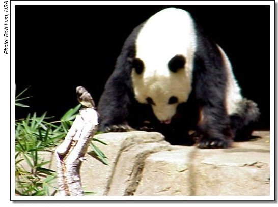 Shi Shi sharing his space with a bird [ Papa Panda | Back Profile | Side Profile | Favourite Photo | More Shi Shi ] | How it all began | San Diego Zoo | Legoland | Hollywood | Big Kitchen |